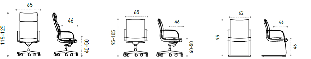 Versão visitante: Estrutura trenó com acabamento cromado. Braços integrados com topo em polipropileno preto.