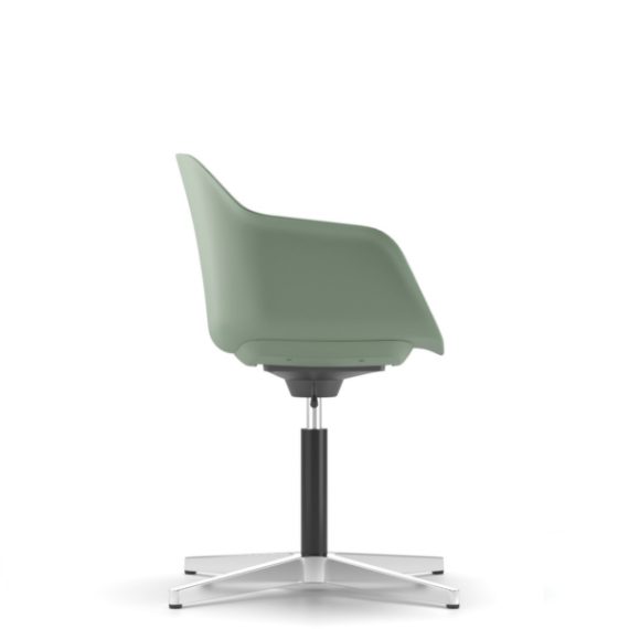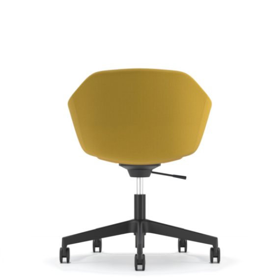 Base giratória: Base de 5 hastes e base de 4 raios piramidal em poliamida preta. Base de 4 raios plana em alumínio polido.