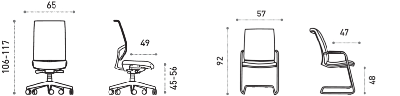 Uma solução muito completa e variada que inclui duas versões giratórias e uma de visitante. Em todos os modelos da linha existe ainda possibilidade de escolha entre uma costa em rede ou estofada frontalmente.